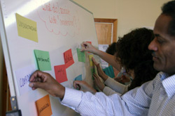 The last session on Wednesday morning focused on group dynamics with Indre and Vera. Starting from a very personal point of view, concerning personal experiences of each of the participants, we reached interesting conclusions about what we thought to be the strongest and the weakest points of our team-work before our meeting in León, and we also forwarded some aims and expectations we hope to fulfill in order to improve our work in groups after this week. Our main objective would be to develop a strong feeling of really belonging to a group! |